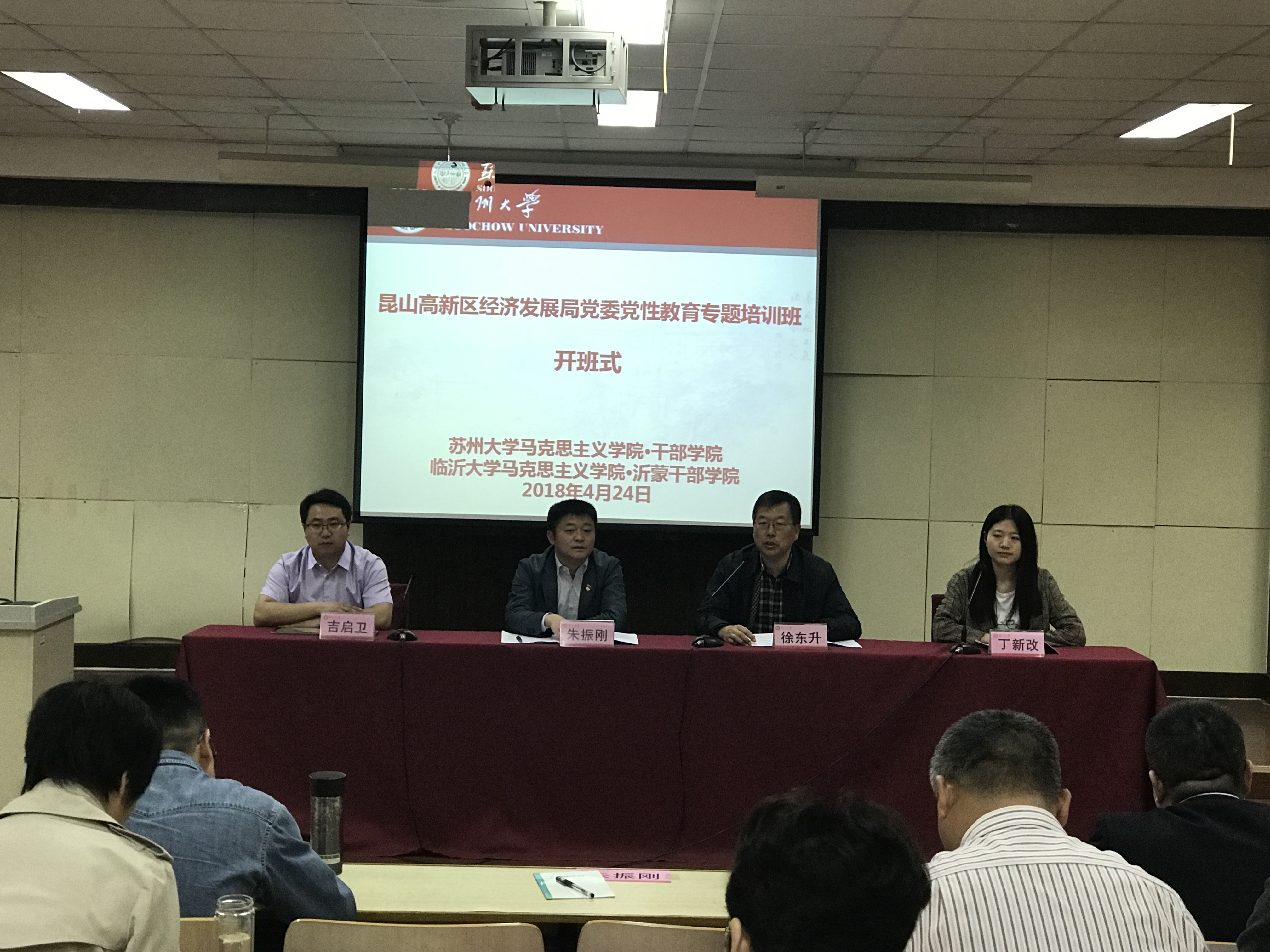 2018年4月23日—26日,欧美色情片 干部欧美色情片 顺利承办了昆山高新区经济发展局党委党性教育专题培训班。24日上午,培训班开班式在临沂大学沂蒙干部欧美色情片 举行。临沂大学欧美色情片 党委书记、沂蒙干部欧美色情片 院长徐东升教授,昆山高新区经济发展局副局长朱振刚,欧美色情片 干部欧美色情片 办公室主任吉启卫,欧美色情片 中国特色社会主义理论体系研究会副会长丁新改和参训学员出席了开班仪式。开班式由丁新改副会长主持。