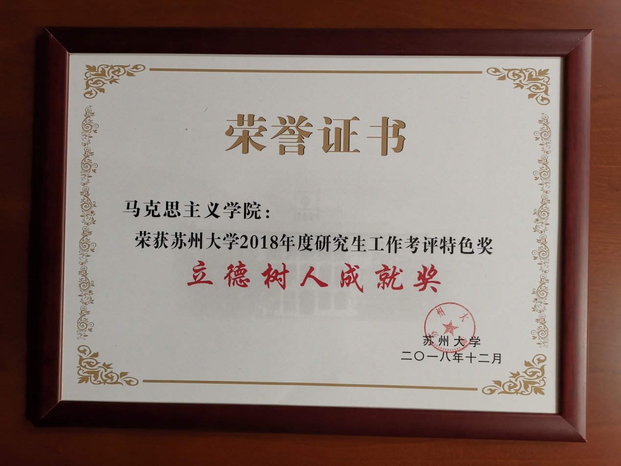 2018年度 研究生工作考评特色奖:立德树人成就奖