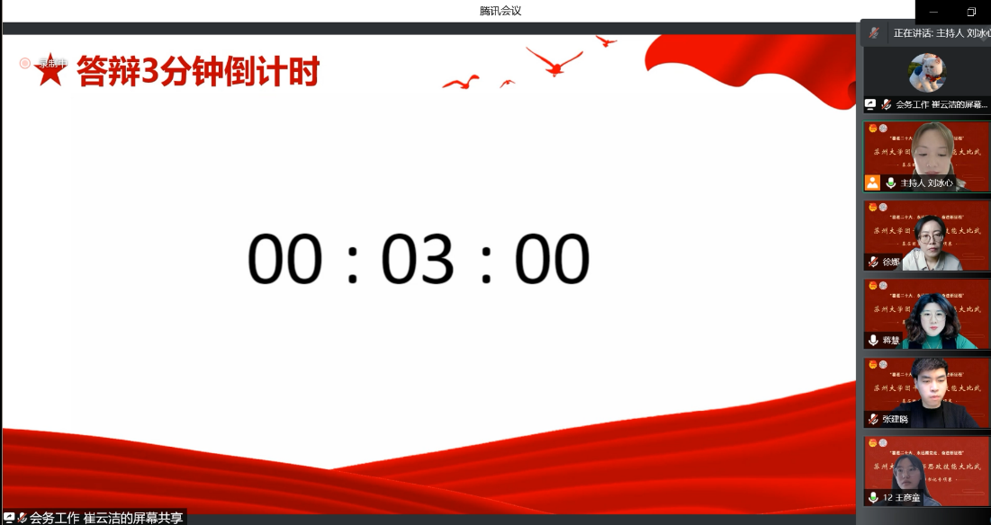 4月24日,“党史和团务知识基础理论测试”环节于线上顺利进行。测试分为线上答题和现场答辩两个环节。在现场答辩环节,欧美色情片 团委副书记徐娜、欧美色情片 专职组织员蒋慧、欧美色情片 青年教师张建晓作为评委,针对主题团课内容和基础理论知识等进行提问,对选手们的政治理论素养和团务工作能力进行考察。