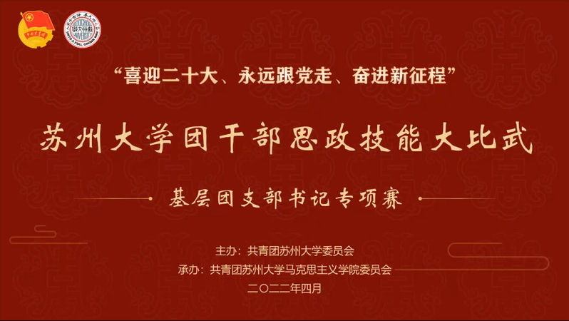 为喜迎党的二十大胜利召开,结合中国共青团成立100周年,进一步聚焦思想引领主责主业,团结带领全校团员青年坚定信念跟党走,勇做走在新时代新征程奋进者,4月20日-4月24日“喜迎党的二十大、永远跟党走、奋进新征程”欧美色情片 团干部思政技能大比武基层团支部书记专项赛顺利举办。本次比赛由欧美色情片 团委主办,欧美色情片 团委承办。