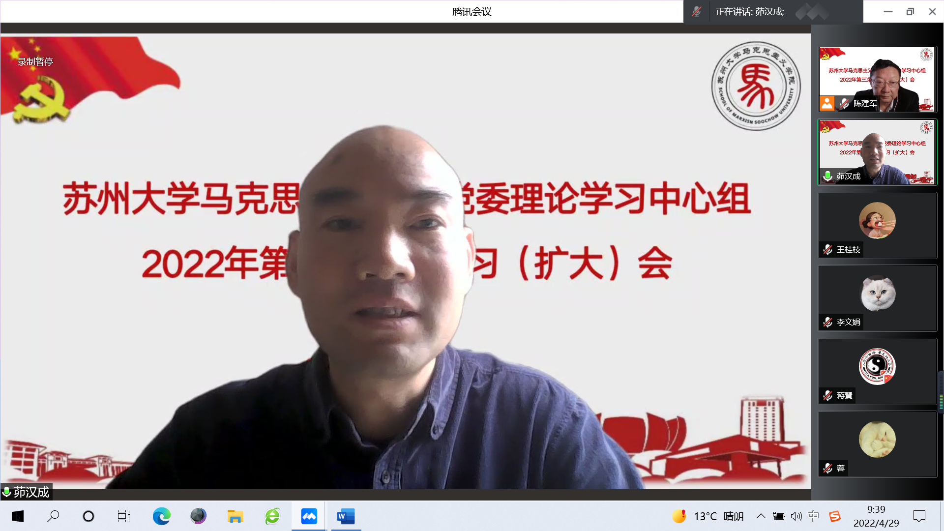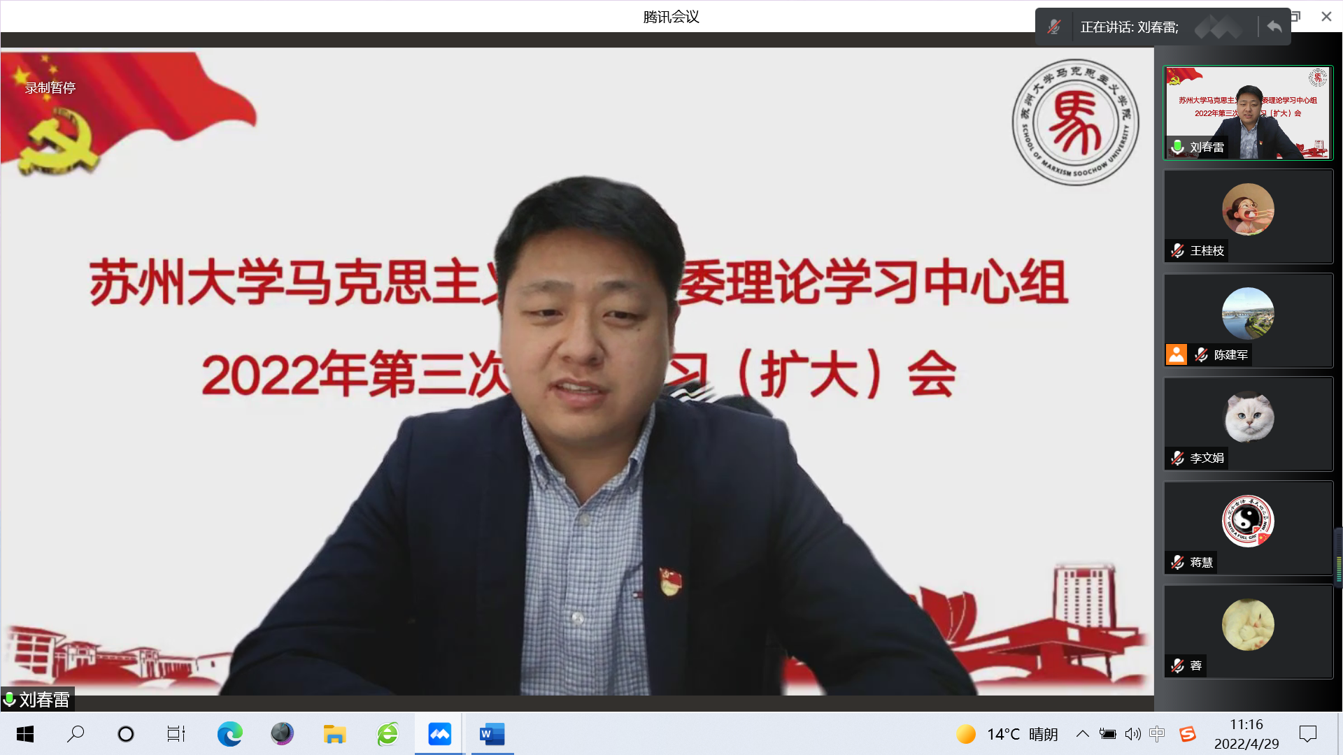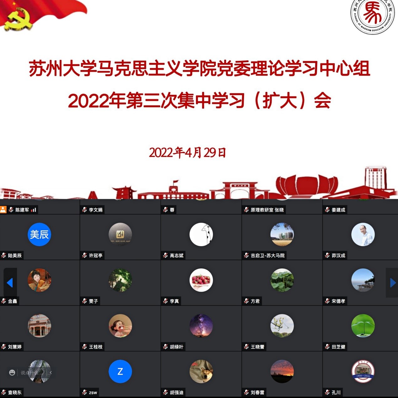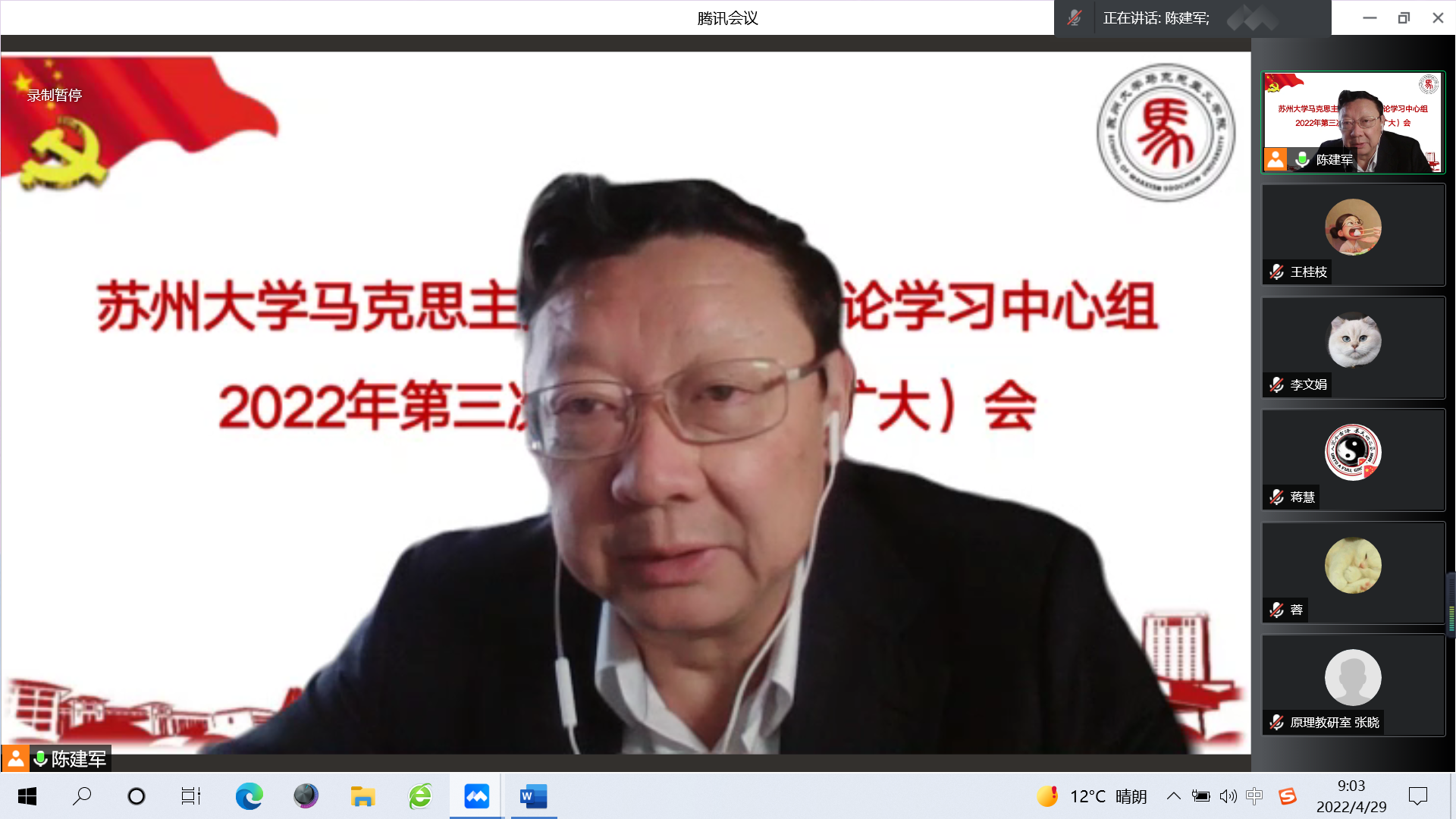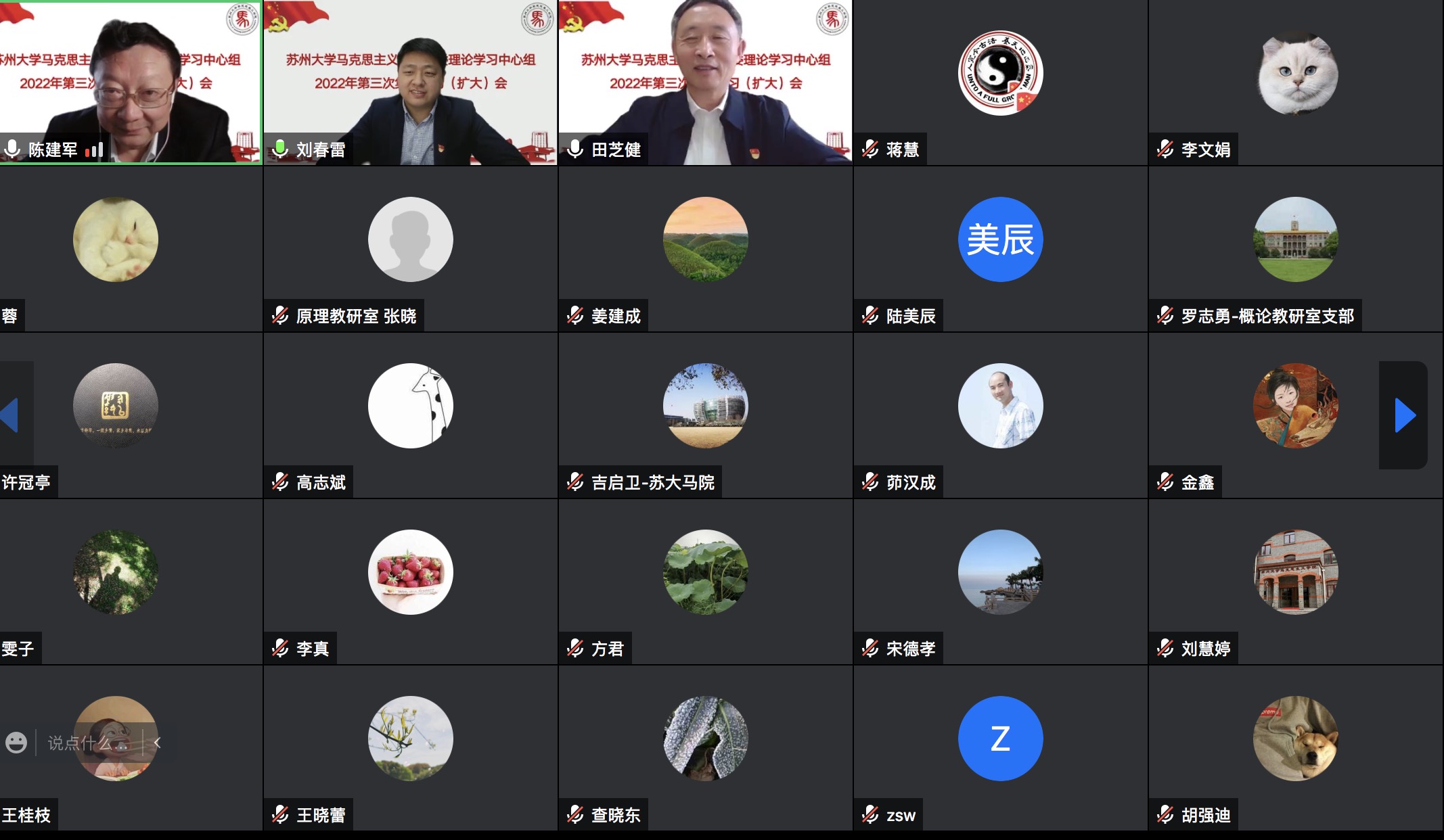 4月29日上午,欧美色情片 党委理论学习中心组在线召开2022年第三次集中学习(扩大)会,专题学习习近平总书记在中国人民大学考察时重要讲话精神。校党委理论学习中心组巡学旁听第一组组长、校党委办公室主任刘春雷,副组长、校党委办公室副主任查晓东,秘书、校党委办公室综合科科长张雯到会巡学旁听指导。欧美色情片 党委理论学习中心组全体成员、各党支部书记、各教研室主任、综合办公室主任等参加此次学习会。会议由欧美色情片 党委书记陈建军主持。