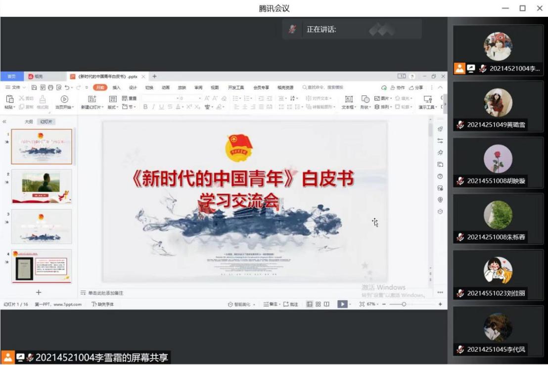 团委特别举办《新时代的中国青年》白皮书在线学习交流会。本次活动由2021级硕士研究生李雪霜主持。