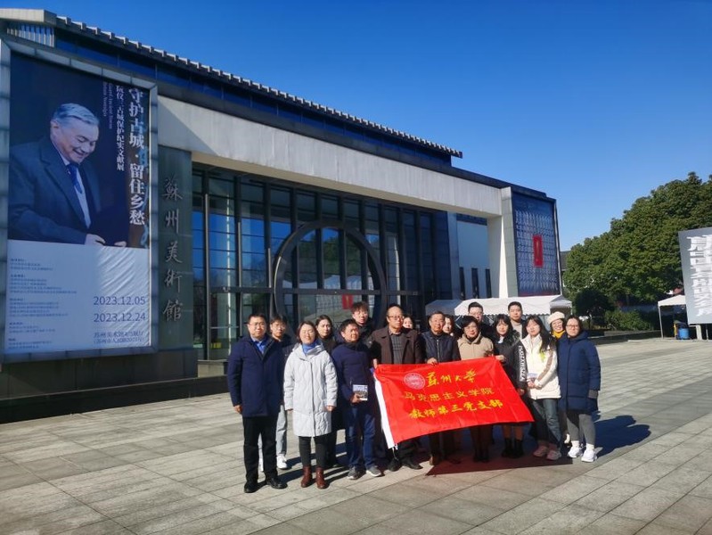 2023年12月22日,欧美色情片 教师第三(习近平新时代中国特色社会主义思想概论教研室)党支部、行政党支部、研究生第一党支部在苏州美术馆联合开展“学习习近平文化思想 从古城保护中汲取力量”主题党日活动。教师第三(习近平新时代中国特色社会主义思想概论教研室)党支部书记杨余春,副书记、教研室主任吉启卫和胡小君教授、戴梦石老师、毛瑞康老师、王小芳老师,行政党支部书记李文娟,欧美色情片 专职组织员、支部组织委员王静和揭雨晨老师,研究生第一党支部组织委员程慧琴,支部党员牛雅甜、郑心玥、谢亚玺、介晓聪、甘媛、王晗于、仇春燕等参加此次活动。