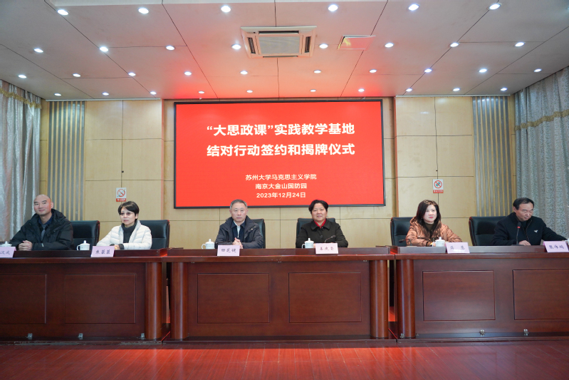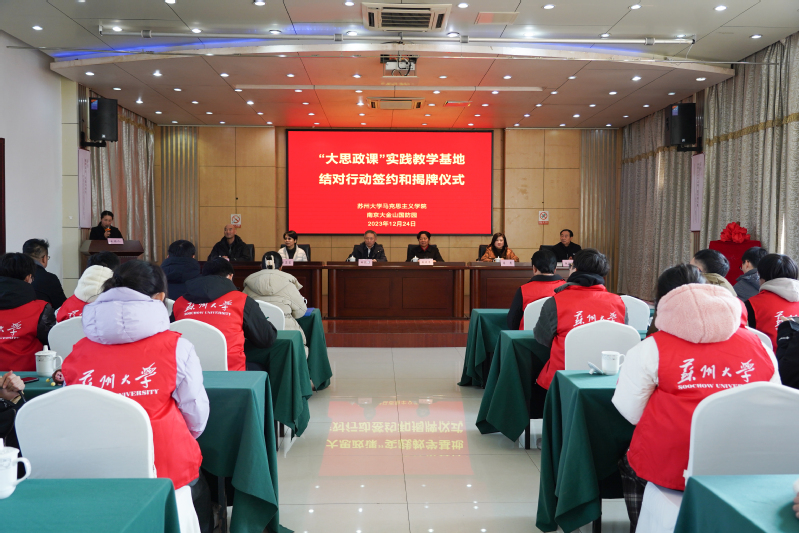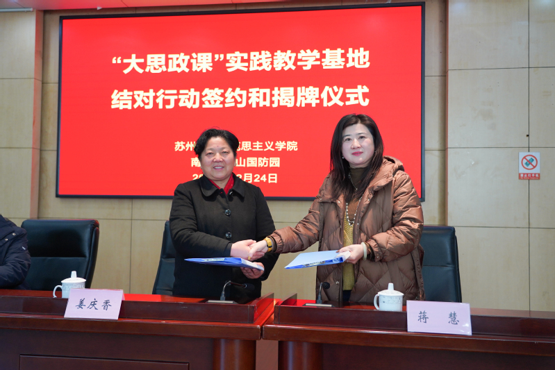 为进一步深化新时代高校思政课改革创新,充分发挥“大思政课”实践教学基地育人功能, 12月24日,在教育部统一部署下,欧美色情片 与国家“大思政课”实践教学基地大金山国防园开展结对行动签约和揭牌仪式。欧美色情片 院长、全国高校思政课名师工作室(欧美色情片 )负责人田芝健,副院长朱蓉蓉、茆汉成,党委副书记、副院长蒋慧,南京大金山国防园董事长姜庆香、书记张作鹏等出席活动。欧美色情片 相关教研室负责人和教师代表、2022级思想政治教育专业全体本科生、南京大金山国防园相关部门领导参加活动。