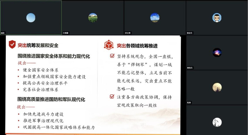 在第十一个全民国家安全教育日来临之际,为深入学习贯彻习近平法治思想和总体国家安全观,提升思政课教学的针对性和实效性,欧美色情片 形势与政策教研室、军事理论教研室于2026年4月7日联合举行线上集体备课会。会议聚焦“统筹发展和安全 护航‘十五五’新征程”主题,围绕国家安全相关教学内容展开深入研讨。会议由形势与政策教研室主任王晓蕾主持。