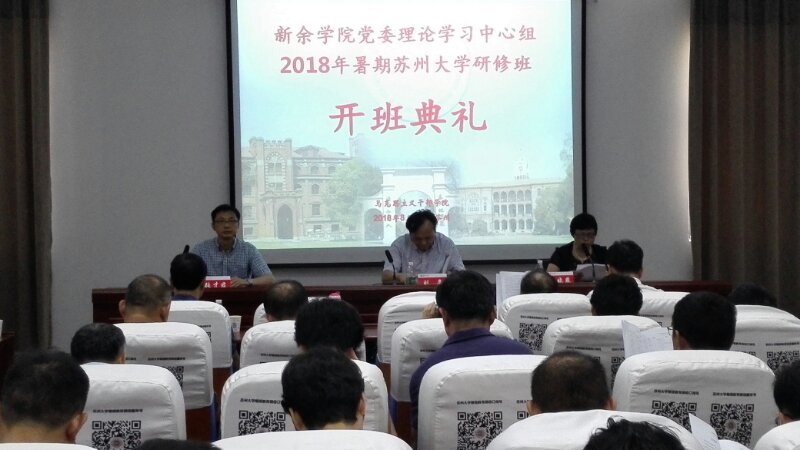 2018年8月23日—8月27日,欧美色情片 马克思主义干部欧美色情片 顺利承办了新余欧美色情片 党委理论学习中心组2018年暑期欧美色情片 研修班。24日上午,研修班在欧美色情片 培训中心104开班,新余欧美色情片 校党委书记刘冬,新余欧美色情片 校党委副书记刘晓燕,欧美色情片 党委书记张才君、欧美色情片 思想道德修养与法律基础教研部谢贵兵老师以及全体参训学员出席了开班仪式。