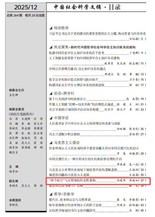孙建华、周婉如文章被《中国社会科学文摘》2025年第12期转载