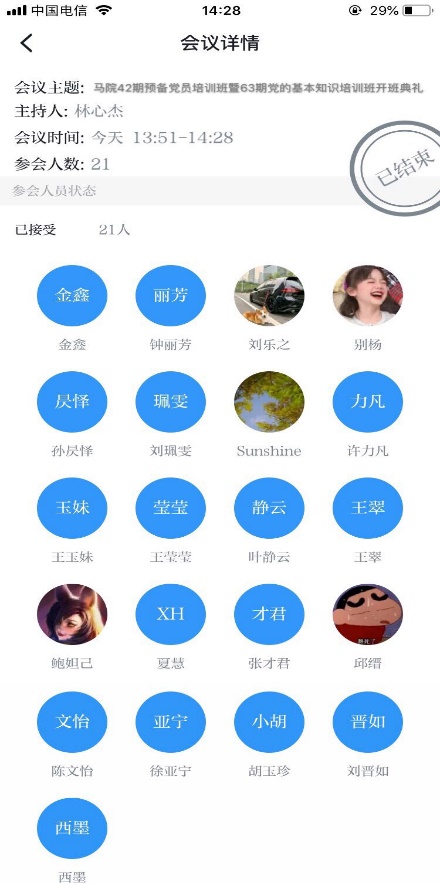 主持人林心杰同学随后向学员们传达了本次培训班应遵守的学员守则和培训要求。对预备党员和即将确定为发展对象的积极分子进行培训,既是保证新发展党员质量,保持先进性和纯洁性的必要环节,也是帮助学员了解党了解党员的义务和权利,树立共产主义信念的需要。当前全国上下通过全力持续抗击疫情,疫情防控国内基本稳定,而国外疫情已经爆发,在内防逆转外防输入的严峻时期,开展这样一堂线上党课开班典礼,无疑对于新时代青年认真学习习近平新时代中国特色社会主义思想,坚定“四个自信”增强“四个意识”做到“两个维护”具有重要的意义,希望各位学员严格要求自己,在党课培训中不断努力提升自我。