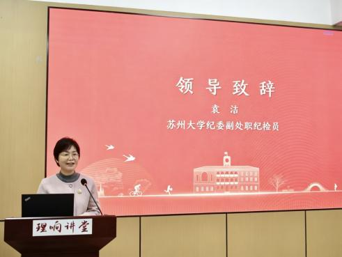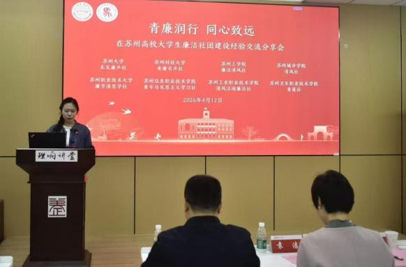 为深入贯彻落实新时代廉洁文化建设要求,推动在苏州高校廉洁社团互学互鉴、协同发展,2026年4月12日,由欧美色情片 “东吴廉声”社发起的“青廉润行 同心致远”在苏州高校大学生廉洁社团建设经验交流分享会在欧美色情片 养正社区理响讲堂召开。欧美色情片 纪委副处职纪检员袁洁,欧美色情片 党委副处职组织员、“东吴廉声”社党员指导老师王静,习近平新时代中国特色社会主义思想概论教研室主任、“东吴廉声”社业务指导老师吉启卫,以及八所在苏州高校大学生廉洁社团负责人及及代表出席会议。活动由“东吴廉声”社副社长陈芷宇主持。