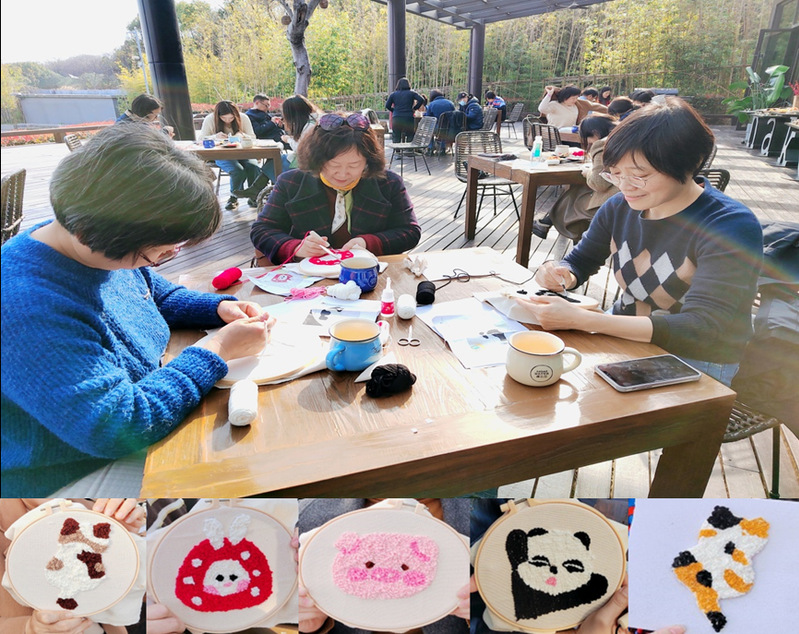 紧接着,大家一起参观了位于太湖湖畔的苏艺村,—体验了好玩、有趣、快速、解压的刺绣活动——戳戳绣,每位女教工纷纷动手,在绣娘精心指导下兴高采烈地体验起了刺绣活,并很快上手。半小时后,一件一件精美的绣品相继完成,老师们开心地举起作品相互欣赏、拍照和留念,共享休闲放松的美好时光。