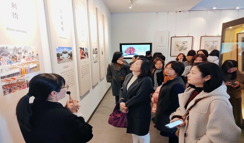 首先,大家一起参观苏绣小镇党群服务中心。这里是苏绣的发源地,具有2200多年的刺绣文化历史。该中心创办的“党建引领·绣美小镇”作为首个国企品牌获评高新区“十佳基层党建品牌”,是市属国资系统“海棠花红”先锋阵和高新区线下“政治信仰空间”示范建设点。
