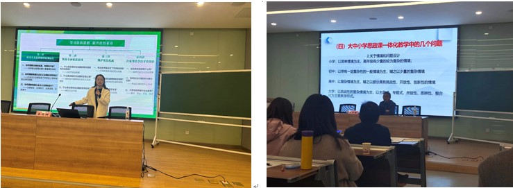 为推进大中小学思想政治教育一体化建设,3月21日下午,欧美色情片 思想政治教育系师生联合党支部、教师第五(思想道德与法治教研室)党支部联合《中国特色社会主义理论体系研究》课程师生赴苏州工业园区斜塘欧美色情片 参加大中小学思政一体化教学研讨活动。活动由欧美色情片 与苏州工业园区道德与法治陈玉兵工作坊共同组织。江苏省特级教师、姑苏教育名家、苏州市教科院原副院长朱开群,欧美色情片 院长助理孔川,思政系副主任张建晓,教师代表沈颖尹、肖芬芳老师,2023级学科教学(思政)研究生以及金鸡湖教育集团思想道德与法治教师代表参加。