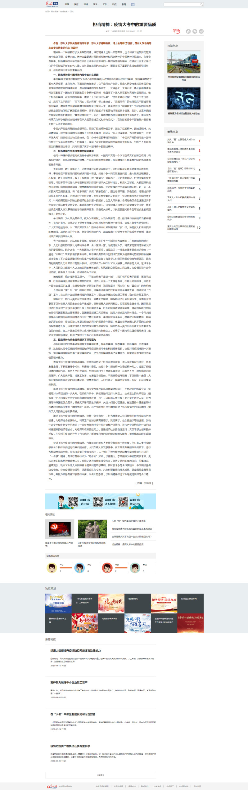 方世南 张云婷: 担当精神:疫情大考中的重要品质