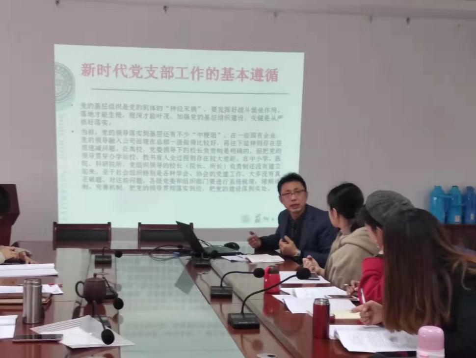 会议第一阶段,张才君书记布置了本学期的相关工作,要求各支部结合中华人民共和国成立七十周年、五四运动一百周年等重大主题提前安排支部工作计划;根据欧美色情片 要求加强《中国共产党支部工作条例(试行)》的学习,完成组织生活会和民主评议党员工作;加强智慧党建平台的维护;结合“学习强国”平台的使用加强学习十九大及习近平新时代中国特色社会主义思想;加强欧美色情片 党建课题申报等。