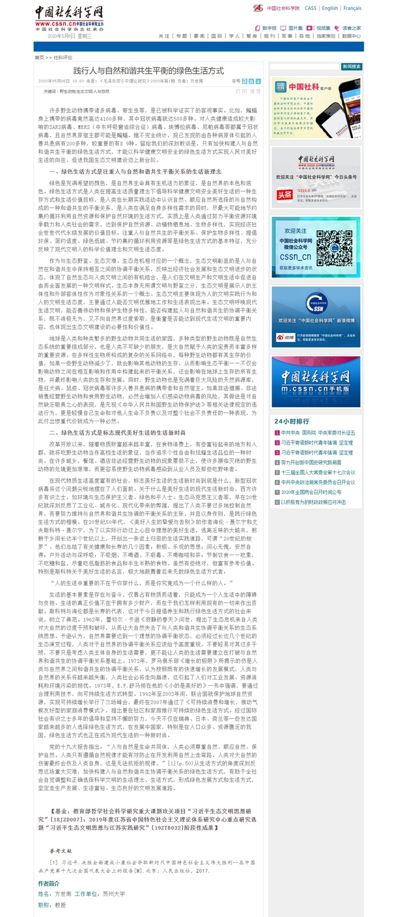 方世南:践行人与自然和谐共生平衡的绿色生活方式