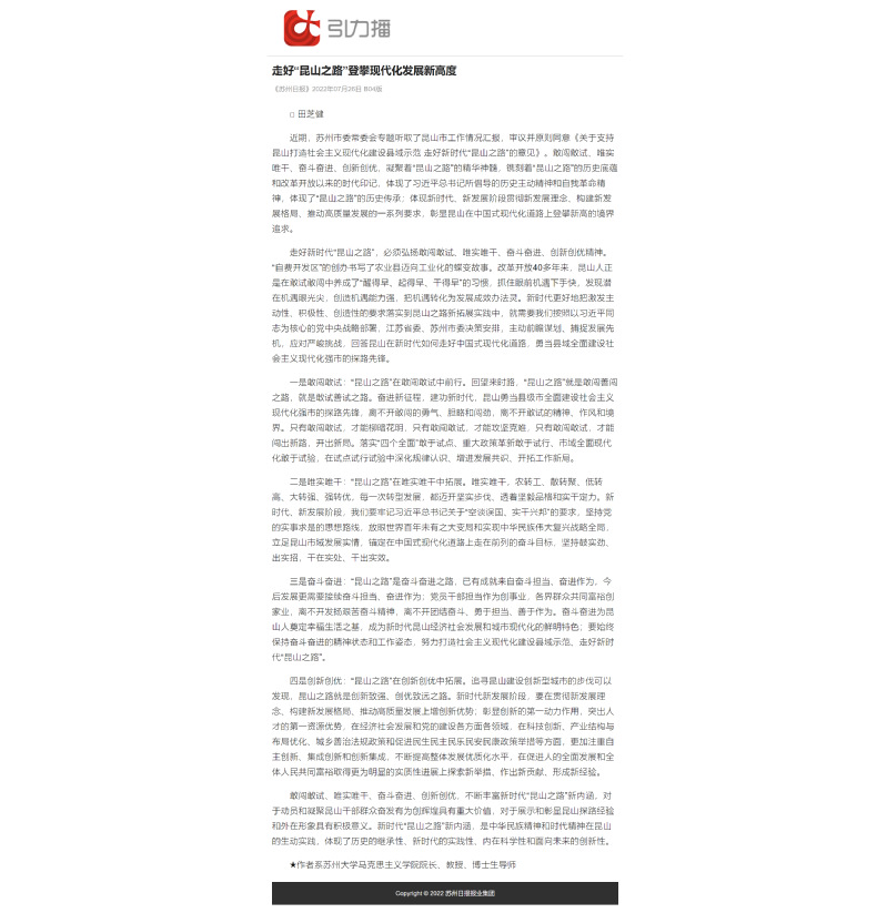 田芝健:走好“昆山之路”登攀现代化发展新高度