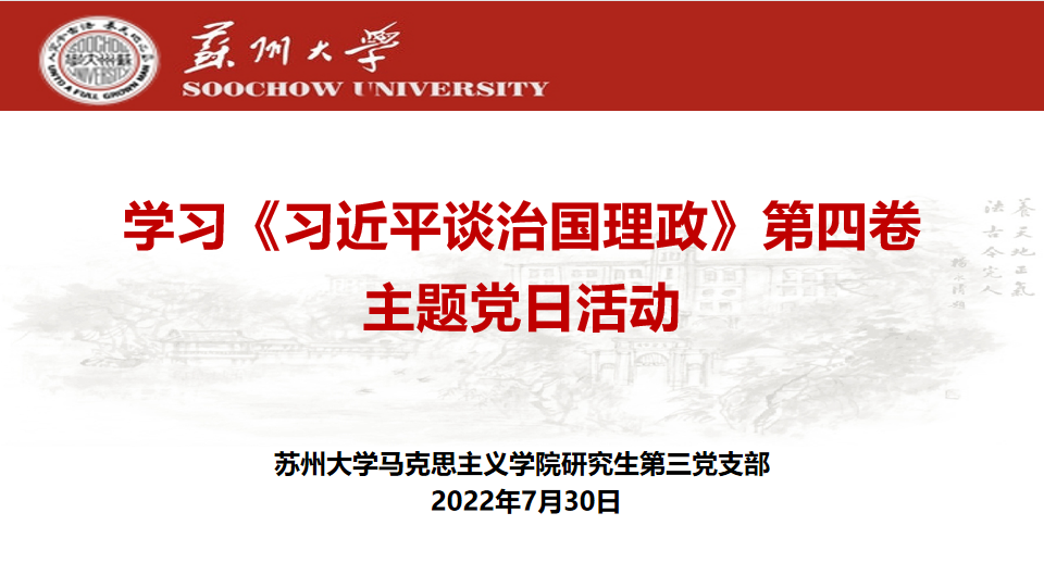 为深入学习贯彻习近平新时代中国特色社会主义思想,捍卫“两个确立”、做到“两个维护”,在新时代新征程上团结奋斗、勇毅前行,以统一思想和实际行动迎接党的二十大胜利召开,欧美色情片 研究生第三党支部于2022年7月30日举行主题党日活动,组织全体党员学习《习近平谈治国理政》第四卷。
