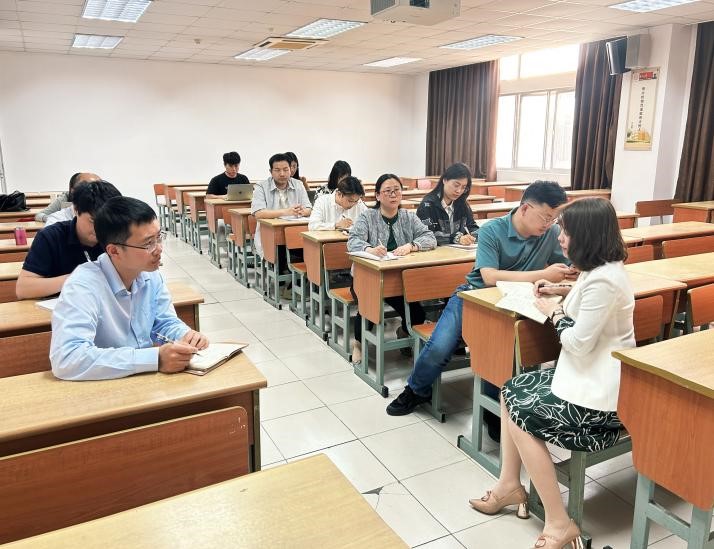 为进一步提升形势与政策课教学质量,深入推进本科教学思想大讨论,2024年5月16日下午,欧美色情片 形势与政策教研室在北校区工科楼307教室召开形势与政策课集体听课集中评课暨工作交流会,形势与政策教研室主任王晓蕾、副主任祁文博,医学部、纺织欧美色情片 、音乐欧美色情片 、计算机欧美色情片 、外国语欧美色情片 等五个院(部)形势与政策授课教师代表及助教团队成员共计14人参加会议。会议由王晓蕾主任主持。