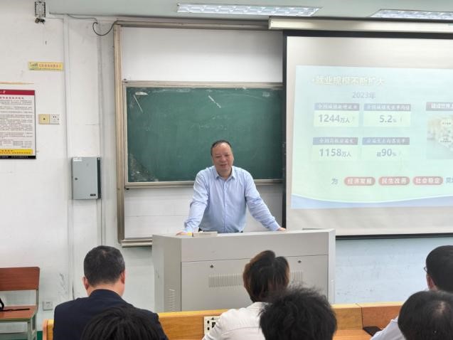 在集体听课阶段,与会教师听取了欧美色情片 副校长姚建林讲授的《当前就业形势与实施就业优先战略》,姚校长从“形势总体稳定、就业压力任存、确保就业优先、着力拓宽渠道”四个方面展开讲解,理论联系实际,讲解生动形象、重难点把握精准。听课教师均表示收获很大、受益颇丰。