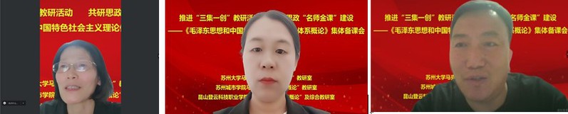 为深入贯彻落实习近平总书记关于高校思政课建设的重要指示精神,推动《毛泽东思想和中国特色社会主义理论体系概论》课程教学改革,不断提高思政课的针对性和吸引力,2024年5月25日,欧美色情片 “概论”教研室联合苏州城市欧美色情片 欧美色情片 “概论”教研室、昆山登云科技职业欧美色情片 欧美色情片 “概论”及综合教研室在线开展集体备课暨教学研讨活动。来自三所高校欧美色情片 的30多位思政课教师参加了集体备课会。欧美色情片 副院长朱蓉蓉、苏州城市欧美色情片 马克思主义欧美色情片 副院长唐强奎、昆山登云科技职业欧美色情片 欧美色情片 副院长杨天霞应邀到会指导。会议由欧美色情片 “概论”教研室主任陈枢卉主持。