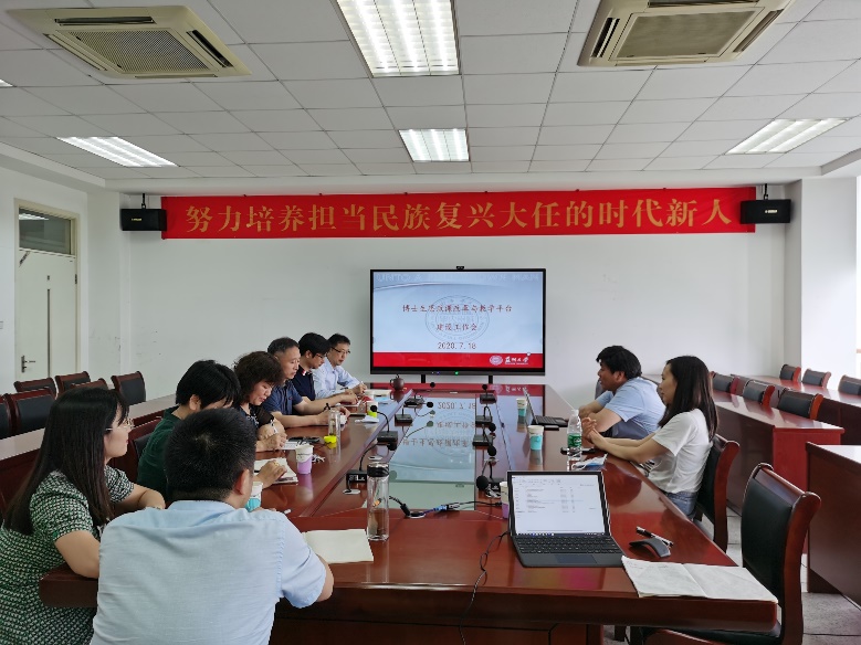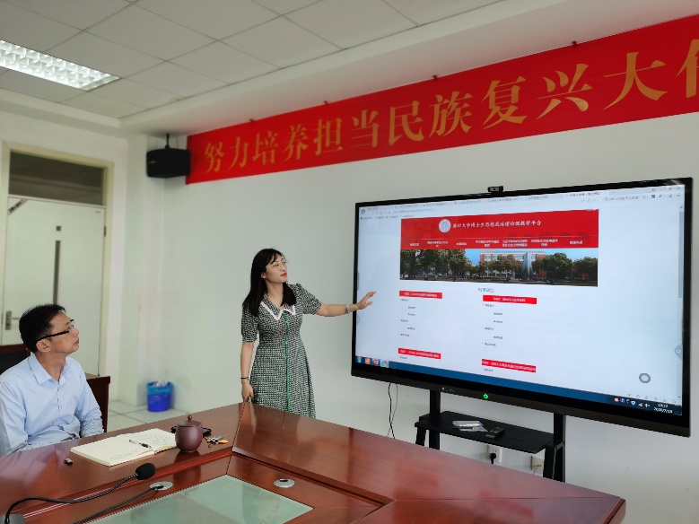 王慧莹师资博士后首先代表博士生思政课教研室向研究生院领导汇报了博士生思政课教学平台建设工作进展,并现场演示了教学平台相关功能。