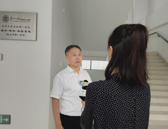田芝健院长接受了昆山市融媒体中心的采访他表示要做好大中小学思政课一体化建设,以“工作站”和“实践基地”为载体,深化思政课一体化教学改革,发挥各自优势,整合优质资源,携手共建高质量思政课。