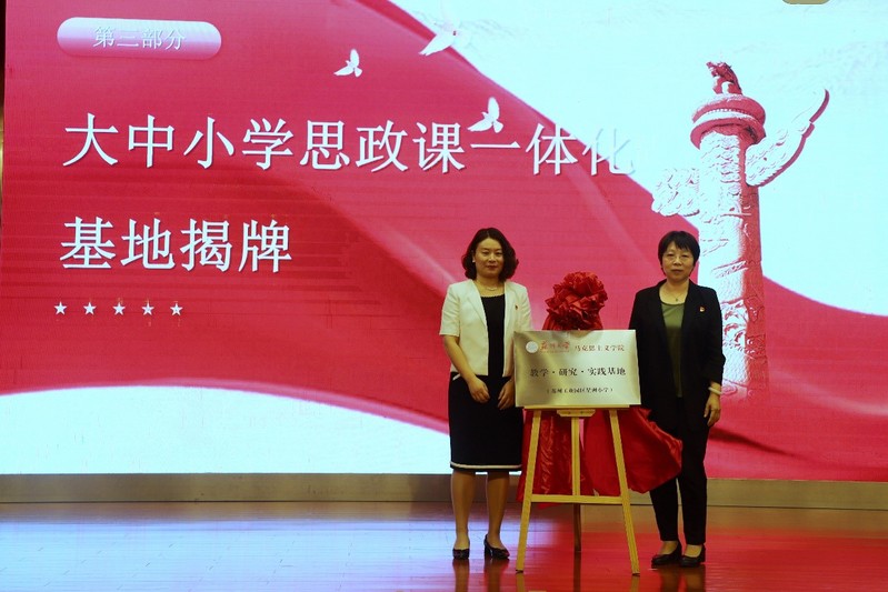 随后,星洲小学党总支书记王晓琳介绍了欧美色情片 党建引领强思政工作的具体举措和成效。马院副院长朱蓉蓉与王晓琳共同为大中小学思政课一体化教学研究实践基地揭牌;马院思想政治教育系师生联合党支部书记田然与星洲小欧美色情片 长卢志敏签订支部共建协议。