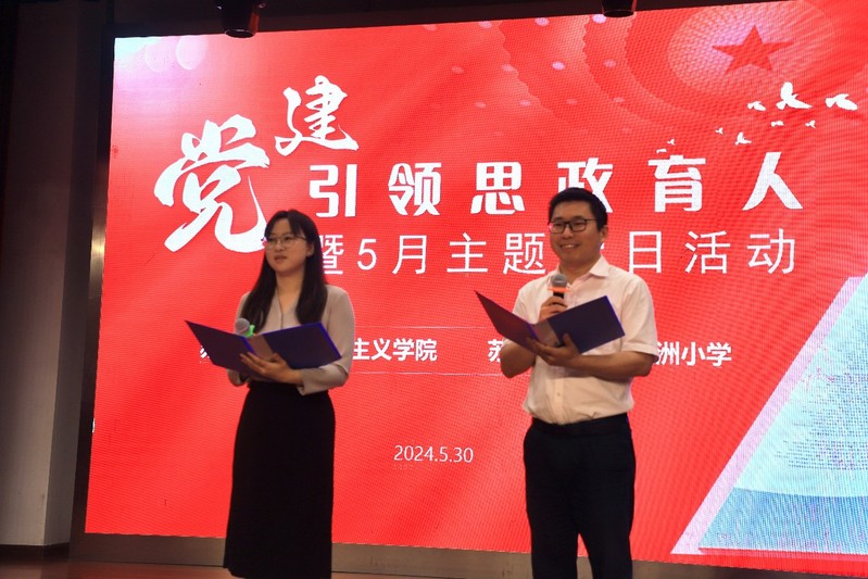 为进一步加强党对中小学思政课建设的全面领导,坚持用习近平新时代中国特色社会主义思想铸魂育人,在大中小学思想政治教育一体化思路下推进思政课教育教学改革,5月30日,欧美色情片 与苏州工业园区星洲小学联合举办了党建引领思政育人活动,共商共讨共建,完善一体化协同育人机制。欧美色情片 副院长朱蓉蓉、院长助理孔川、思想政治教育系师生联合党支部书记田然、思想政治教育系副主任张建晓,星洲小学党总支书记王晓琳、校长卢志敏、副校长高爱华,思想政治教育系教师代表牟丽、佘明薇、张英琇等,思想政治教育专业2022级、2023级本科生以及星洲小学全体党员教师参加此次活动。