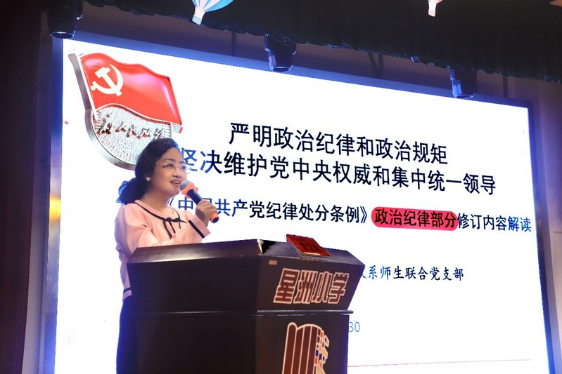 接着,欧美色情片 佘明薇博士以《严明政治纪律和政治规矩,坚决维护党中央权威和集中统一领导》为主题给大家带来了一堂思政微党课,引导大家坚守自律防线。