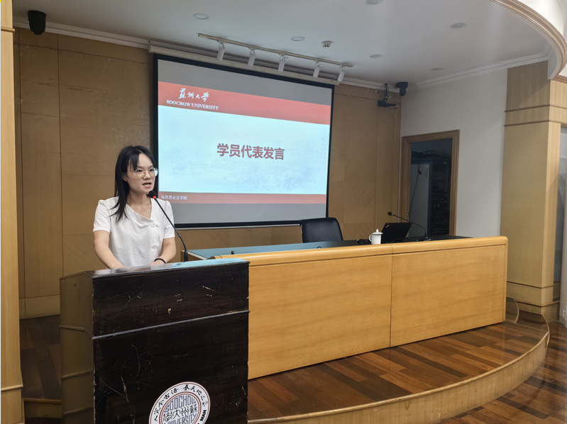 在结业典礼环节,2023级硕士研究生莫江姗和宋瑜静作为学员代表发言。莫江姗同学表示,通过本期培训班的学习,她坚定了入党的决心,认识到了中国共产党员的身份是一种责任、信仰和担当,今后会不断完善自己,为党的事业奉献青春力量。宋瑜静同学表示,在学习中,她深刻认识到了党的性质、宗旨和奋斗目标,进一步明晰了“奋斗”的含义,今后将在党组织的培养与关心下,不断完善自我、砥砺前行。