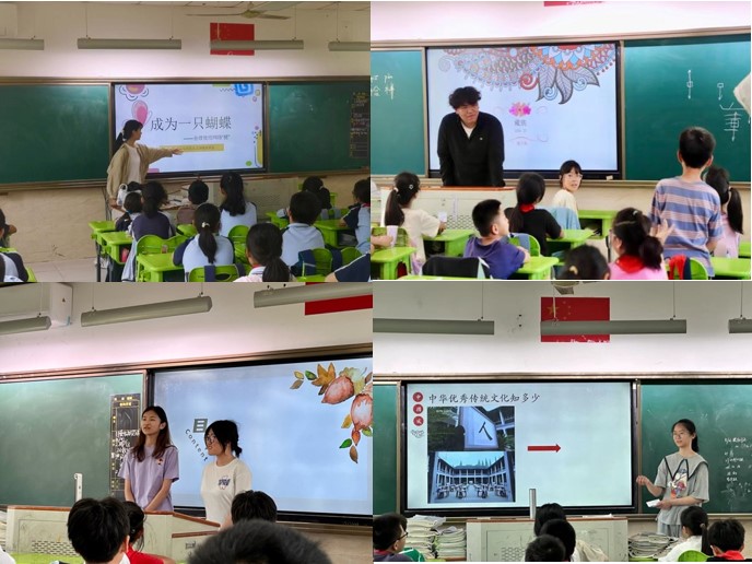 在“大学生进课堂”环节,本科生分组进入五年级4个班级进行“微课堂”教学实践。“教师”初体验不仅锻炼了学生们的课件制作能力、教学时间把控能力以及教学重难点的设计能力等,更让他们进一步明确了在未来教育道路上的方向和目标。