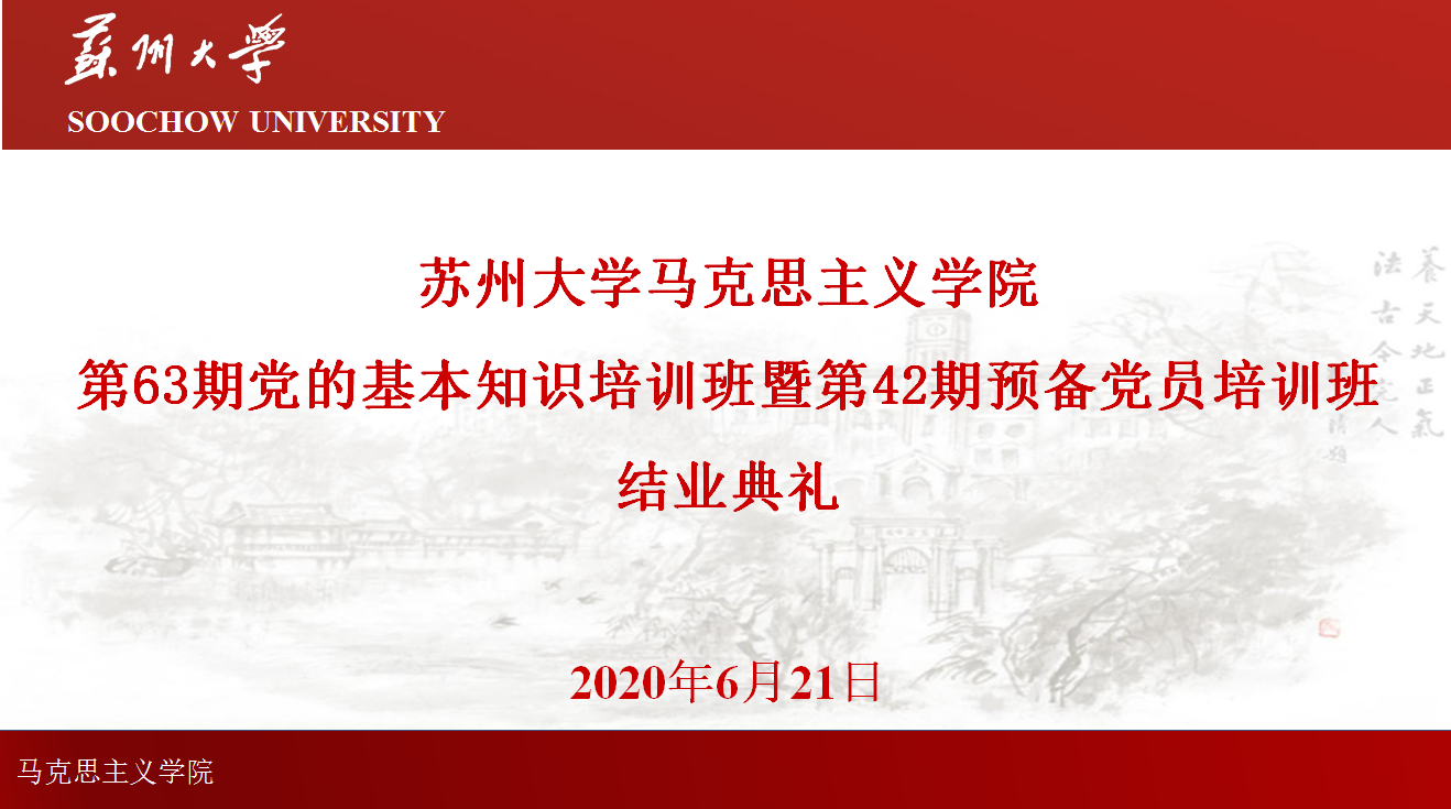 在校党委和院党委的统一部署下,欧美色情片 第63期党的基本知识培训班暨第42期预备党员培训班结业典礼于2020年6月21日成功举办,结业典礼仪式在“学习强国”平台会议室进行。欧美色情片 党委书记张才君、欧美色情片 研究生党支部书记金鑫、第63期党的基本知识培训班暨第42期预备党员培训班全体学员参加了此次线上结业典礼,典礼由欧美色情片 党委组织、欧美色情片 研究生党支部承办,仪式由金鑫老师主持。