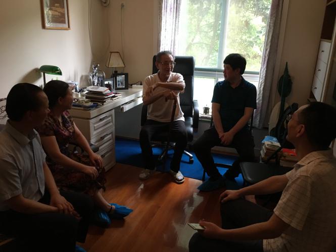 下午3时许,当一行人正兴致勃勃地行至小区内高选老师住宅楼下时,忽然,传来一句爽朗的招呼声,“那该是冠亭吧,你们好!”简短而又质朴的问候,充满着热情和关爱!众人抬头,但见高老师正伫立自家窗口,热切地向大家挥手致意。被高老师喊出名字的许冠亭教授随声应和:“高老师您好!我们这就上楼!”
