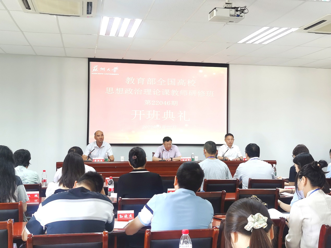 2022年9月22日,由教育部社科司主办、全国高校思想政治理论课教师研修基地(苏州大学)承办的教育部全国高校思想政治理论课教师研修班第22046期研修班正式开班,来自江苏省30所高校的35名思政课老师参与了此次研修,专题讲座通过“全国高校思想政治理论课教师网络集体备课平台”面向全国高校思政课教师进行全程现场直播。