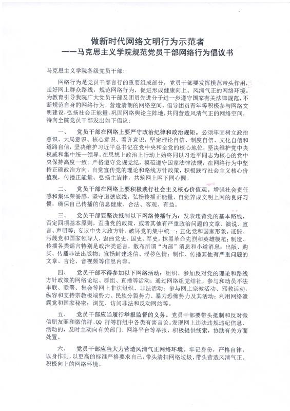 党委理论中心组专题学习规范党员干部网络行为等相关文件并发出网络文明行为倡议