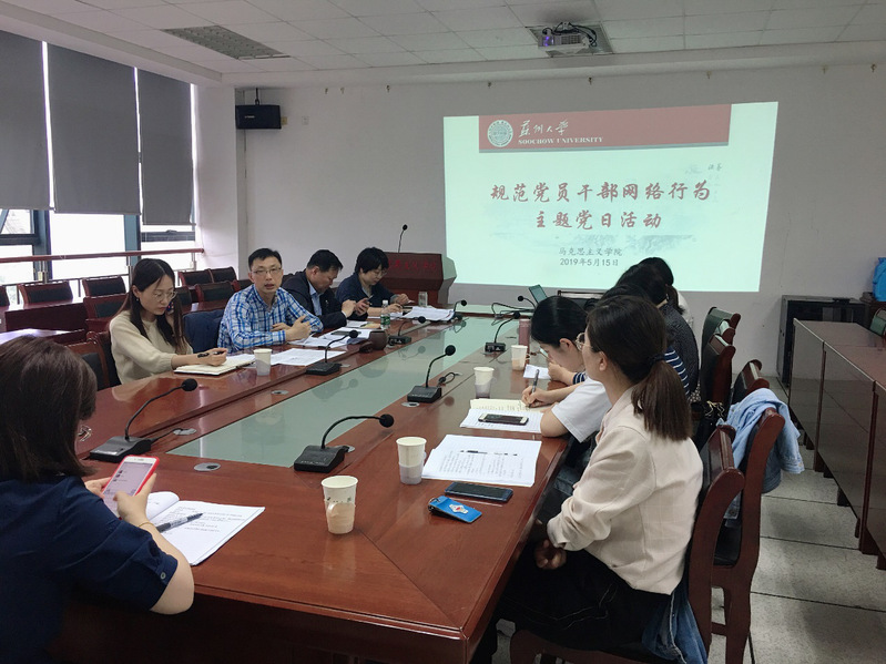 2019年5月15日下午在6418会议室,欧美色情片 党委理论中心组与欧美色情片 党支部书记、机关党支部党员一起联合举行专题学习学习规范党员干部网络行为等相关文件活动。会议由欧美色情片 组织人事秘书刘媛媛主持。