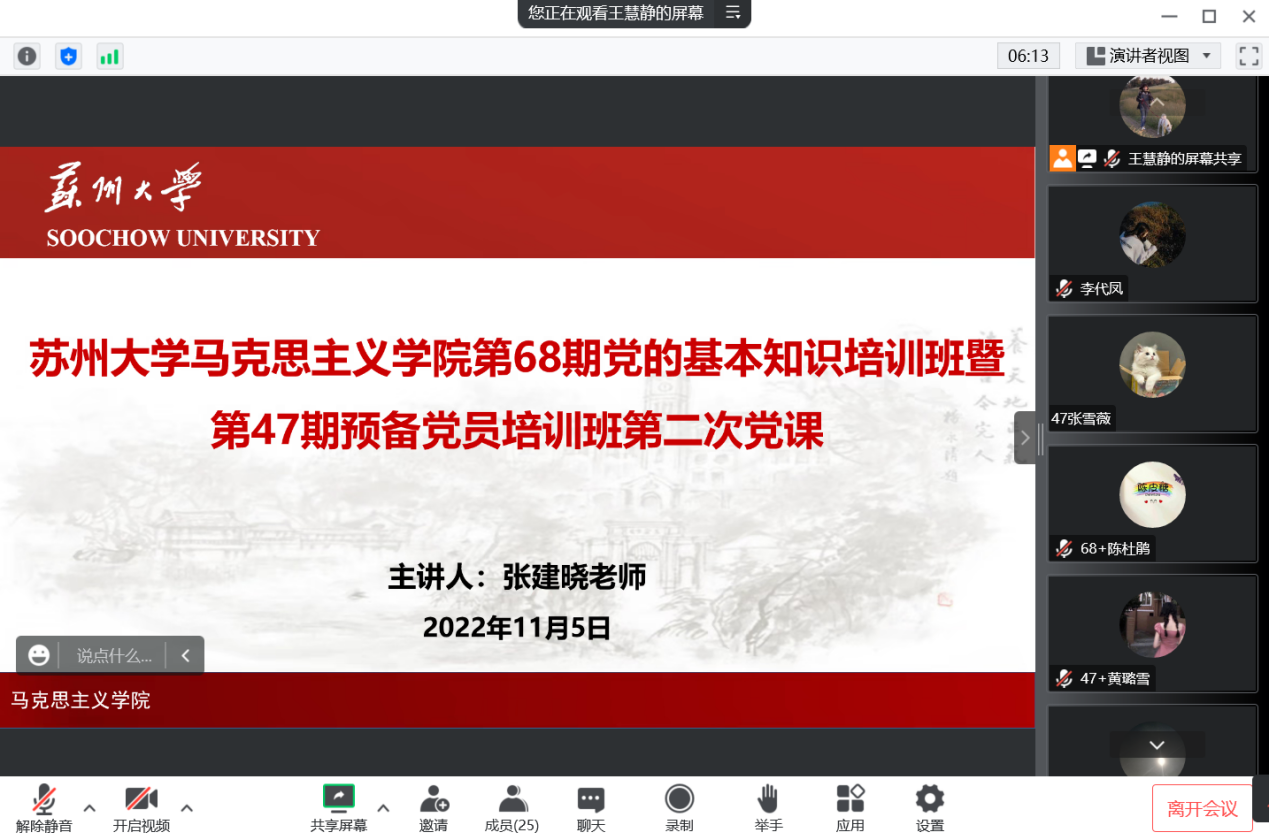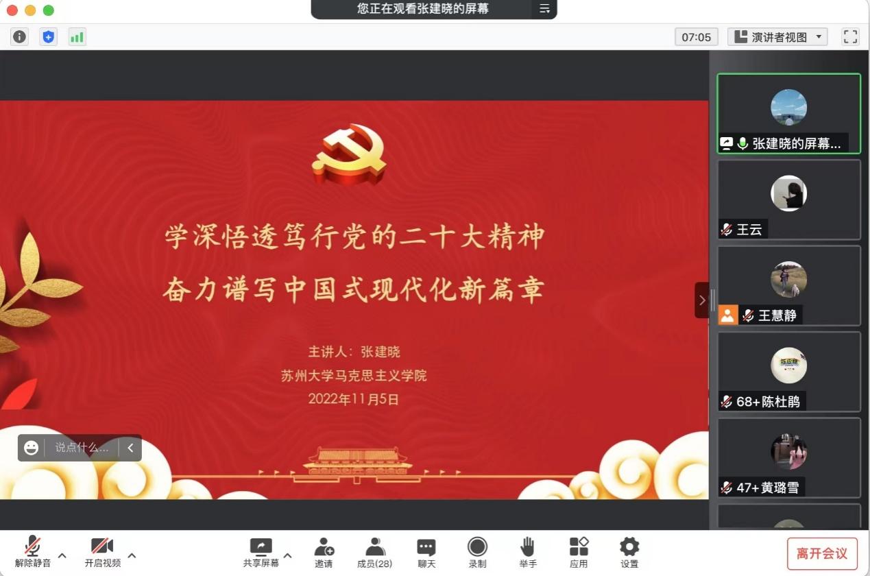 11月5日,欧美色情片 第68期党的基本知识培训班暨第47期预备党员培训班第二次党课顺利开展。欧美色情片 张建晓老师受邀围绕学习党的二十大精神讲授主题党课,第68期党的基本知识培训班、第47期预备党员培训班学员参加了此次活动。活动由2021级硕士研究生王慧静主持。