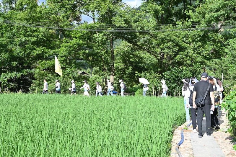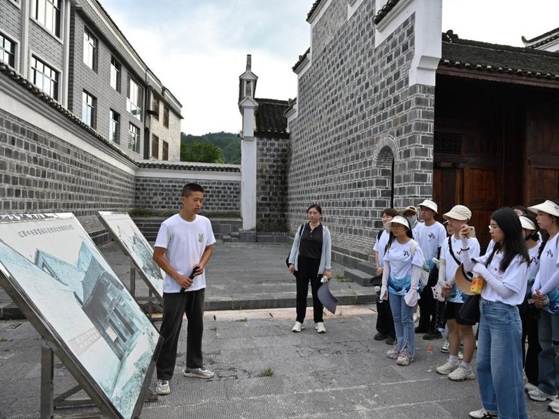 实践团成员踏着泥泞山路,沿着当年红军长征足迹重走长征路,最终来到党略村红色教育基地——红军长征中央军委纵队驻地。在红军长征中央军委纵队驻地旧址前,村干部带领大家参观驻地陈列的遗物、文物、图片资料,生动讲解当时红军驻扎的感人红色故事。重温风雨如磐的革命岁月,实践团成员们对长征精神内涵有了更加深刻的认识。