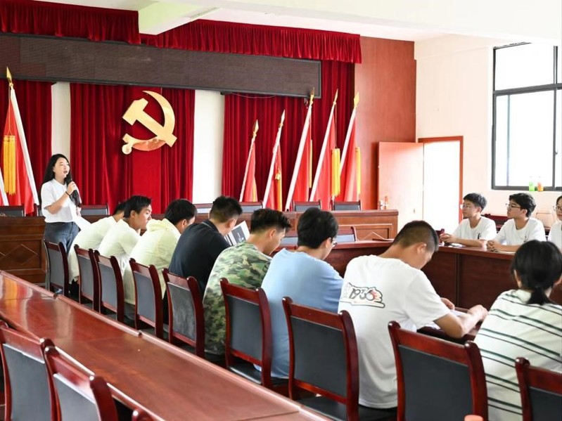 会后,实践团成员白靖楠面向小河村返乡大学生和村民代表展开围绕“习近平青年工作重要论述”的主题宣讲。现场的青年朋友们深受启发,纷纷围绕宣讲主题进行互动交流,分享自己的感悟和体会,一致表示要肩负起历史的责任感和使命感,做有理想、敢担当、能吃苦、肯奋斗的新时代好青年。