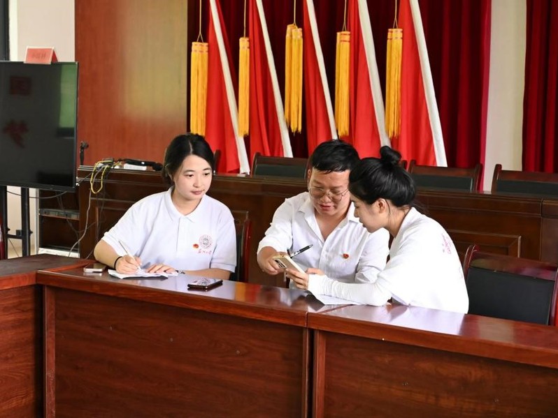 实践团在实地调研后与施洞镇小河村村干部们就调研考察当地红色文化开展座谈。小河村村支书张黎健向参会的实践团成员们详细介绍了小河村的地理位置、红色资源分布情况,以及村内近年来在红色文化旅游等方面所取得的显著成就与未来规划。实践团成员们针对村内红色文化育人成效等问题与参会领导老师进行了交流。