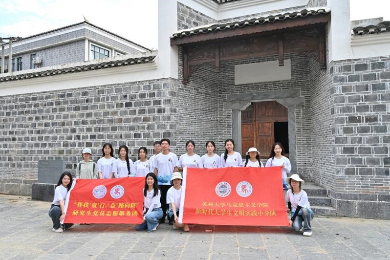 红色文化资源是中国共产党艰辛而辉煌的奋斗历程的见证,是最宝贵的精神财富。7月10日至11日,欧美色情片 “伴我‘童’行,‘益’路向阳”研究生党员志愿服务团为调研贵州红色文化传播与保护现状,前往贵州省黔东南苗族侗族自治州台江县施洞镇,开启“长征”红色之旅。