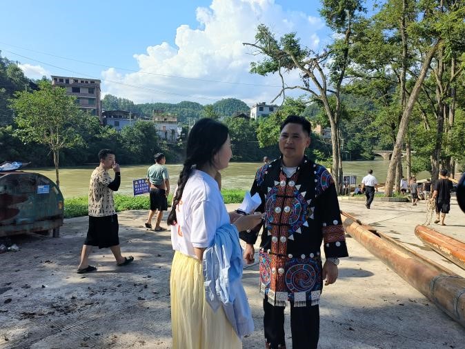苗族独木龙舟节于2008年被列入第二批国家级非物质文化遗产代表性项目名录。实践团探访小河村渡口,了解苗族独木龙舟节历史与文化实貌,并实地感受苗族传统节日氛围。在当地村民带领下,实践团成员沉浸式体验独木龙舟节各个环节,感受苗族人对美好生活的祈愿。独木龙舟节不仅承担着凝聚人心、聚拢人气的重要社会功能,也为乡村振兴提供了源源不断的活力。