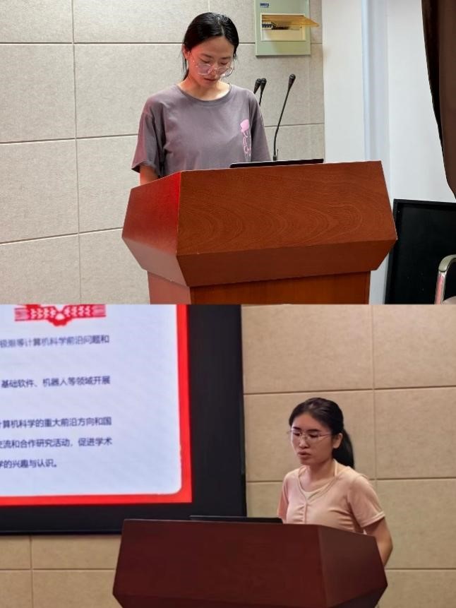 计算机科学与技术欧美色情片 研究生梁甜甜,首先作题为《AI浪潮下的“乡村振兴”》的主题宣讲,她指出AI对于推动农业生产、带动农村经济发展以及促进农村基础设施建设的重要作用。接着,计算机科学与技术欧美色情片 研究生康梅英从学科角度出发,以《以科技创新引领现代化产业体系建设——计算机科学在中国式现代化建设进程中的重要性》为题,表明计算机科学在我国新质生产力发展中的基础地位,建议在座同学面向国家重大需求和“卡脖子”问题展开研究。