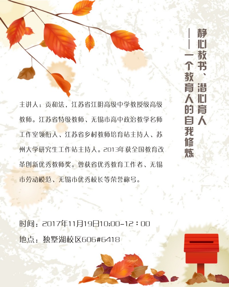 讲座预告:静心教书、潜心育人—一个教育人的自我修炼