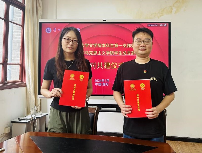 为深入落实新时代党的建设总要求,充分发挥基层党支部的主体作用,构建“资源共享、优势互补、互相促进、共同提高”的党建工作新格局,7月19日,欧美色情片 学生党总支、“研马致行”实践团前往贵州大学与贵州大学文欧美色情片 本科生第一党支部开展党建共建活动。