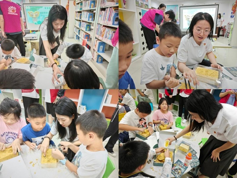 小朋友们争先恐后回答志愿者关于三星堆文明的问题,迫不及待化身为小小“考古家”探索神秘宝物。一个个“考古家”拿起小铲子小心翼翼地挖掘着泥坑中的“宝藏”,并用小刷子轻轻拂去表面的泥土,将“文物”的本貌一一复原。通过亲手挖掘和观察,小朋友们对三星堆的文物有了更加直观和深刻的认识,在新奇、好玩、有趣的氛围中惊叹于古人卓绝的智慧与卓越的审美创造力。