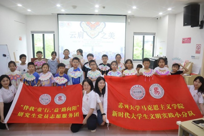 7月22日,欧美色情片 “伴我‘童’行,‘益’路向阳”研究生党员志愿服务团走进苏州市虎丘区横塘社区开展“云肩之美”手绘活动。活动旨在让小朋友们在探索传统服饰之美中培养审美情趣和艺术鉴赏能力,增强对中华优秀传统文化的认同感和自豪感,并通过亲手制作和装饰云肩,锻炼其动手能力和创造力。