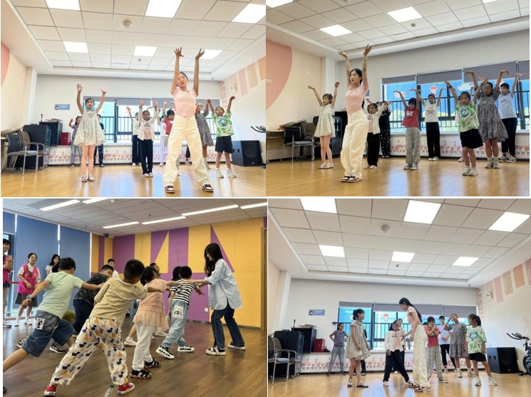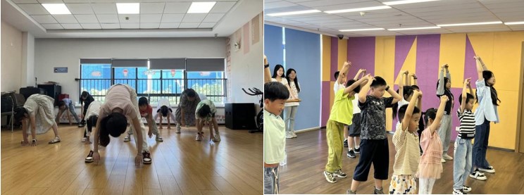 伴随古典优雅的音乐,小朋友们同志愿者一道起舞身姿,展露曼妙的舞蹈气息,一遍遍专注练习着志愿者新教的双背手、双按掌、兰花掌等基础舞蹈动作。从脚步的移动到手臂的摆动,孩子们跟随着志愿者的节奏,从生疏到熟练,身体开始变得灵活自如。舞蹈不仅锻炼了他们的身体,更让他们在快乐中了解和传承传统文化。