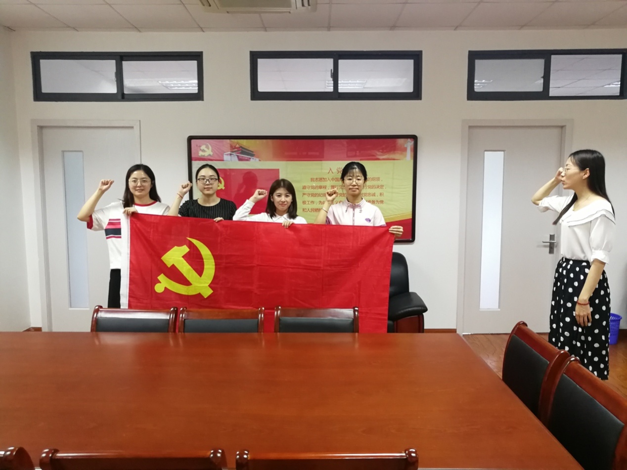 为增强新党员的党性意识,2019年7月2日欧美色情片 在6411会议室为2018级研究生党支部的新党员举行了入党集体宣誓仪式。领誓人是欧美色情片 研究生党支部书记金鑫老师,宣誓人为欧美色情片 2018级研究生郭潇彬、齐晓营、干蒙蒙、雷晶。