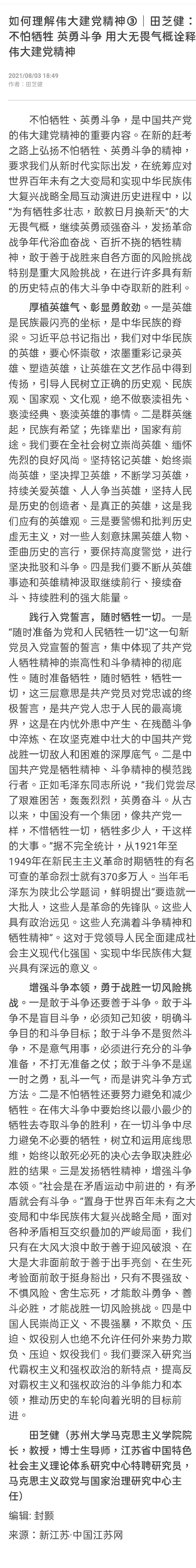 田芝健:不怕牺牲 英勇斗争 用大无畏气概诠释伟大建党精神